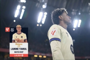 体育资讯3月8日讯 西甲第27轮,巴萨客场1-0战胜毕尔巴鄂竞技。赛后,巴萨攻击手亚马尔当选全场最佳球员。