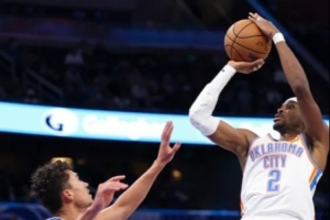 值得一提的是,他投的对手:OG、追梦、班凯罗,都是肌肉猛男。亚历山大一个撤步,片叶不沾身。