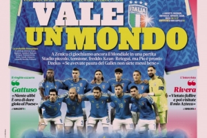体育资讯3月31日讯 今天《米兰体育报》的头版被蓝衣军团占据,标题就是:“意大利值得一届世界杯。”