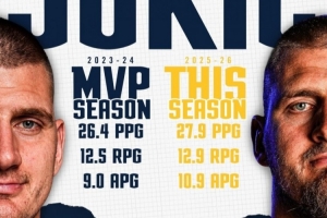 场均27.9分12.9板10.9助!掘金官方:约基奇比他上个MVP季更强了
